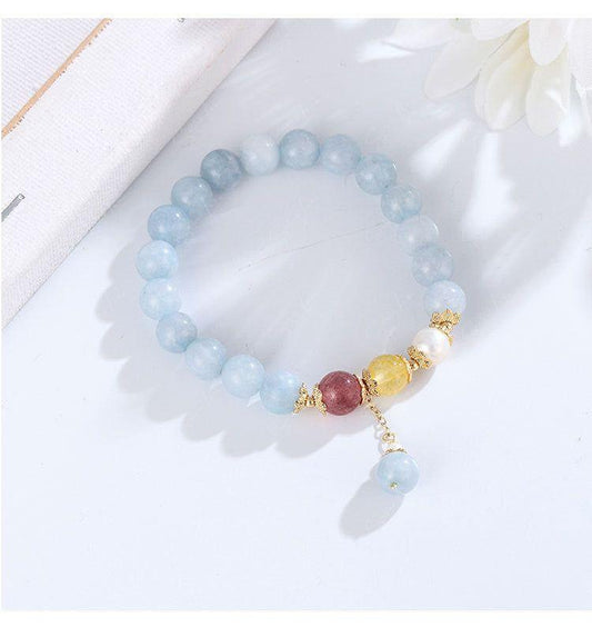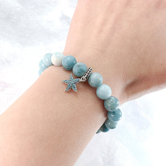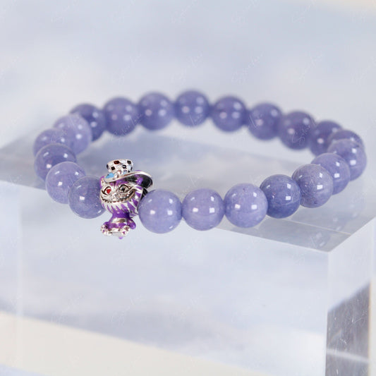 Blue Angelite beaded bracelet with Cherish cat bead charm