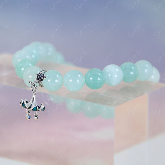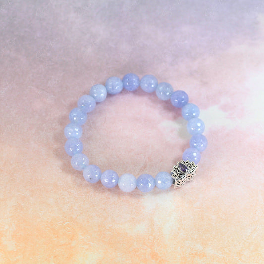 Silver lotus charm blue Angelite beaded fengshui bracelet