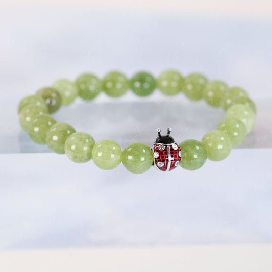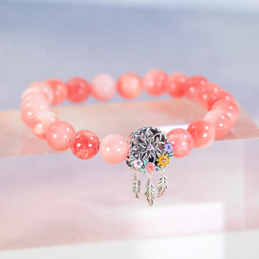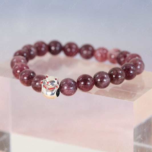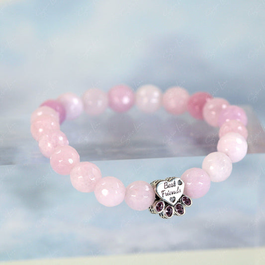 Best friends Paw charm pink Kunzite jade beaded bracelet