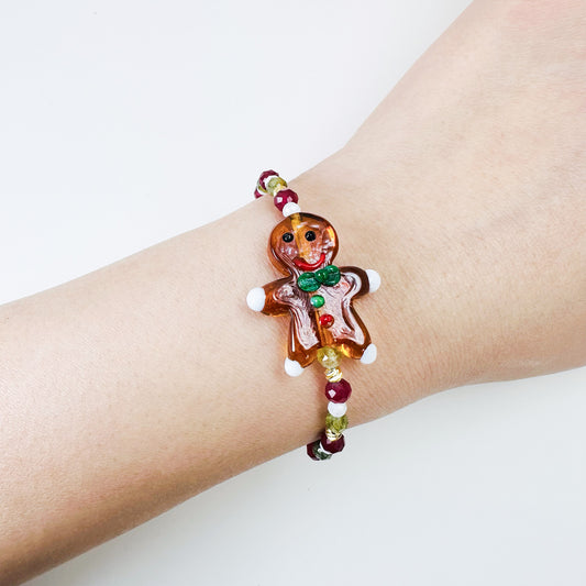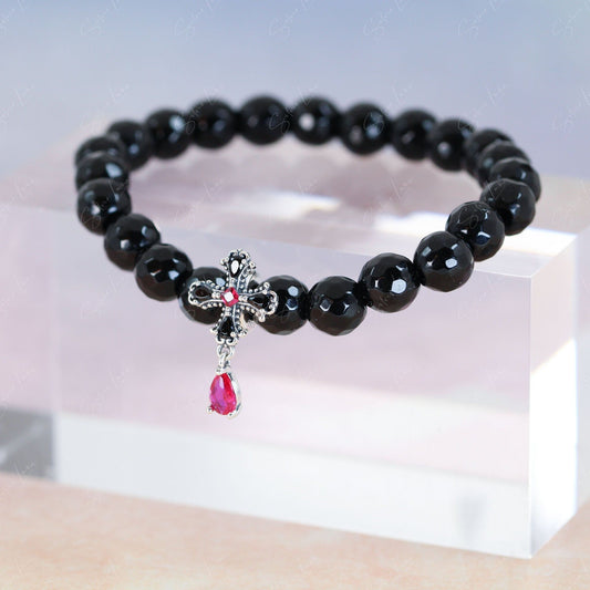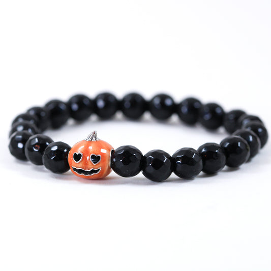 Glow in the dark Jack-O-Lantern black agate beaded bracelet