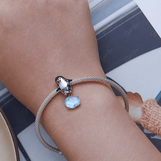 Elegant blue swan sterling silver charm for bracelet