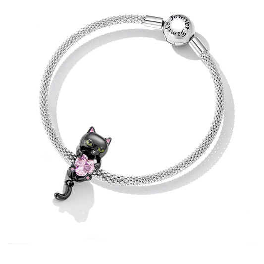 Sweet heart black cat sterling silver bead charm