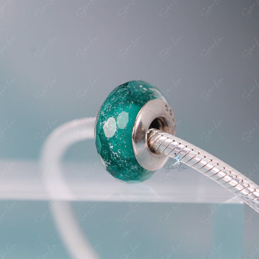 Diamond cut Murano glass bead charm for bracelet