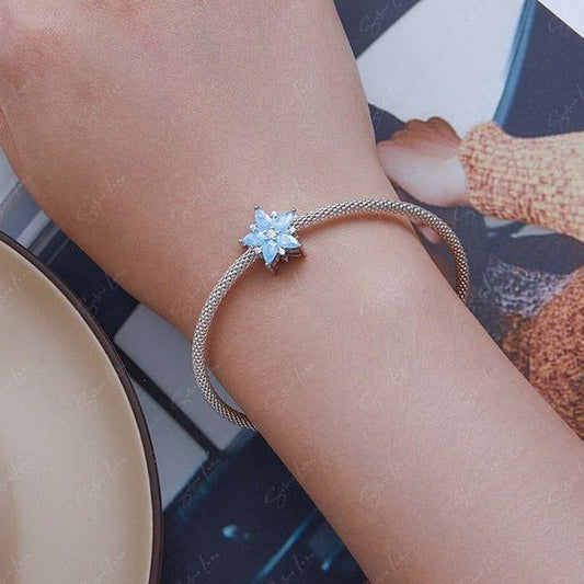 Blue crystal snowflake flower sterling silver bead charm