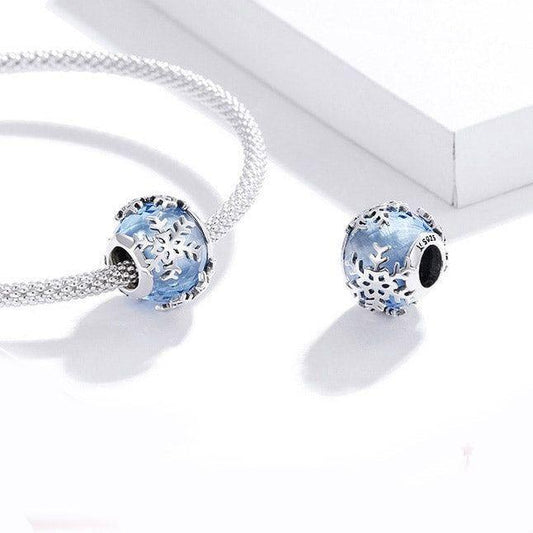Blue snowflake glass bead charm for bracelet