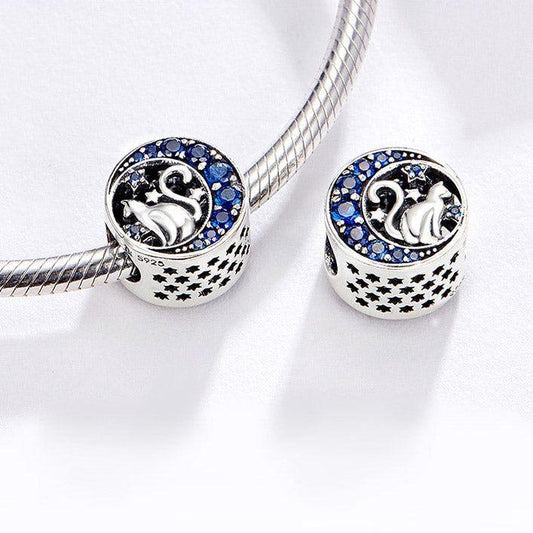 Cat on blue moon sterling silver bead charm
