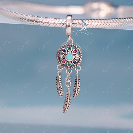 Dream catcher sterling silver pendant charm