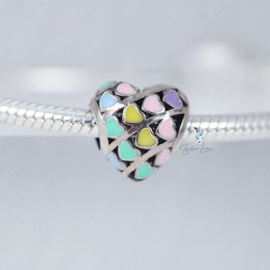 Rainbow sterling silver heart charm for bracelet