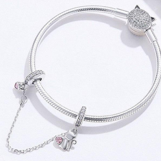 Lovely cat with heart security chain for bracelets