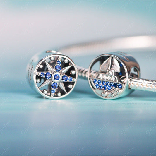 Travel ship and compass bead charm for bracelet