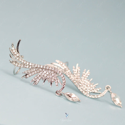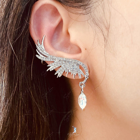 Crystal rhinestone angel wing stud earrings ear cuffs