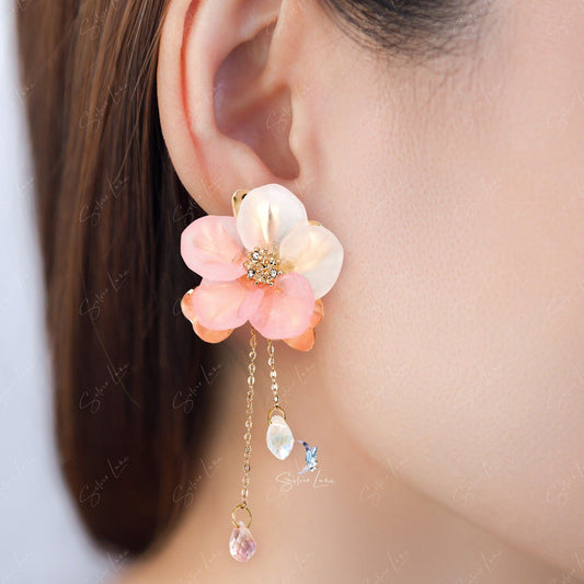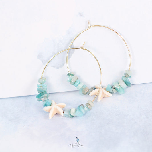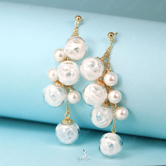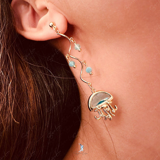 Jellyfish blue chalcedony beaded dangle drop earrings
