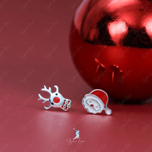 Santa Claus and reindeer sterling silver stud earrings