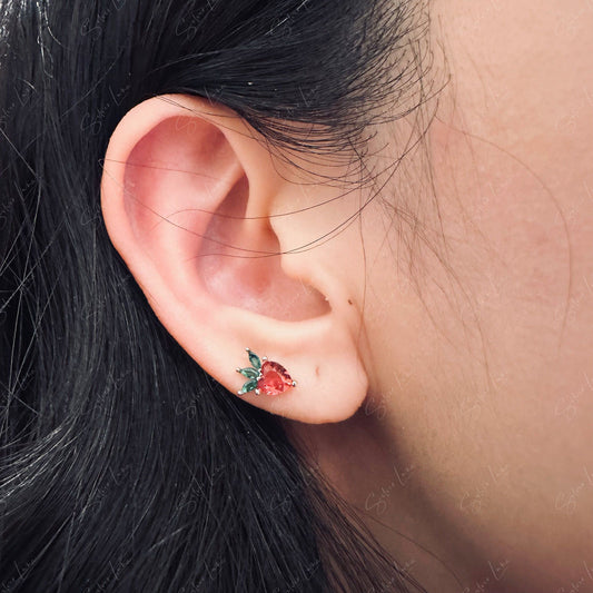 Strawberry heart screw back sterling silver stud earrings