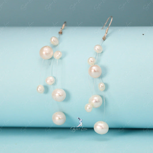Aquamarine and fresh water pearl teardrop bridal earrings