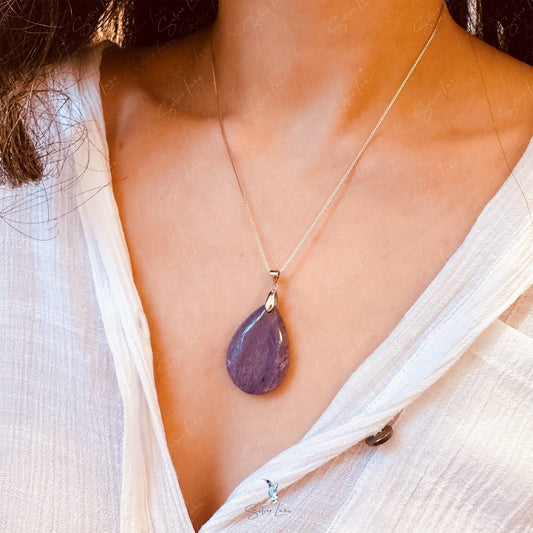 Purple Charoite teardrop pendant necklace