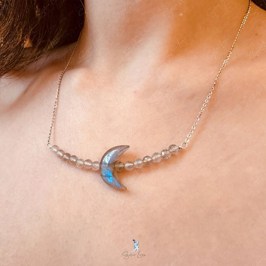 Mystic moon Labradorite beaded silver necklace