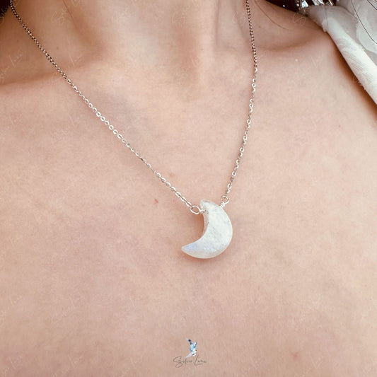 Rainbow moonstone crescent moon pendant necklace