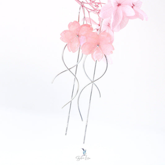 Cherry blossom flower silver earrings