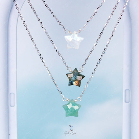 Star shape natural stone pendant silver necklace