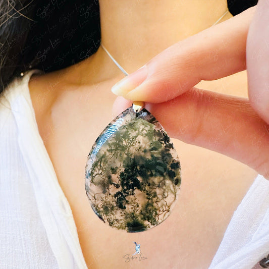Moss agate teardrop pendant necklace
