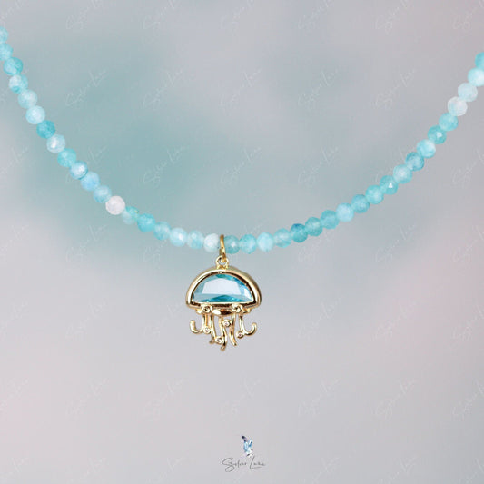 Jellyfish blue chalcedony beaded dangle drop earrings
