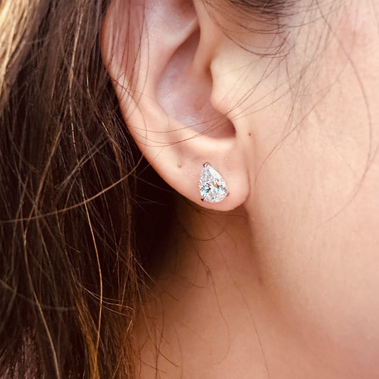 Teardrop cubic zirconia stud earrings in sterlings silver