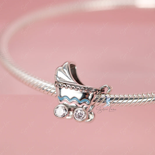 Baby stroller sterling silver charm for bracelet