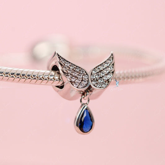 Angel wings tear drop sterling silver charm
