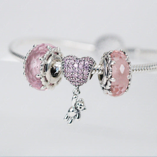 Teddy bear hanging on heart balloon dangle charm