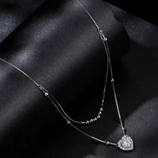 1 CT Moissanite heart pendant double layer necklace