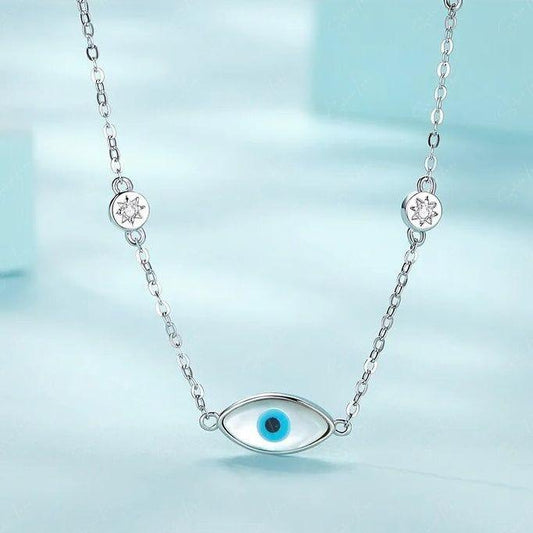 Evil eye with stars sterling silver choker necklace