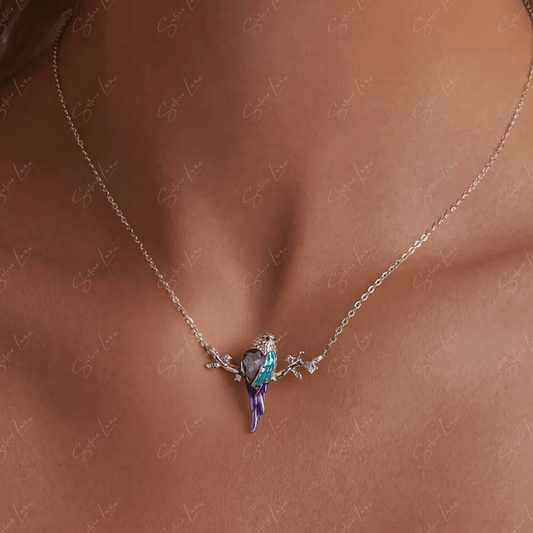 Mockingbird on branch pendant necklace