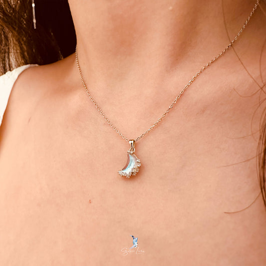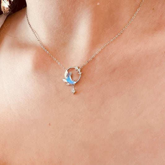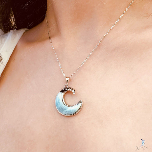 Blue crescent moon sterling silver pendant necklace
