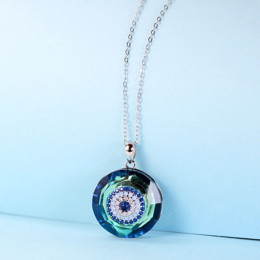 Crystal ring evil eye sterling silver pendant necklace