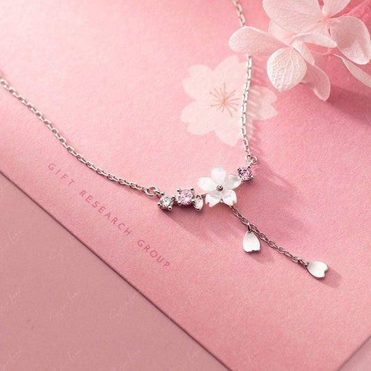 Cherry blossom sterling silver pendant necklace