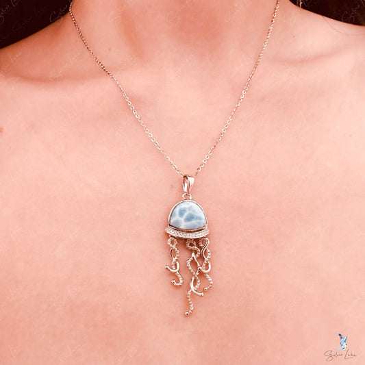 Jellyfish Larimar sterling silver pendant necklace