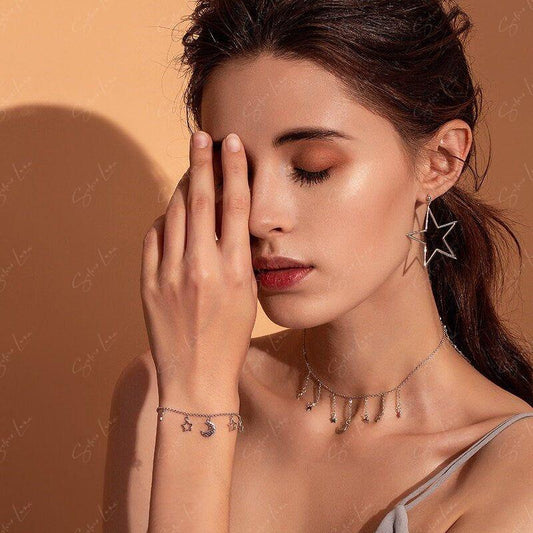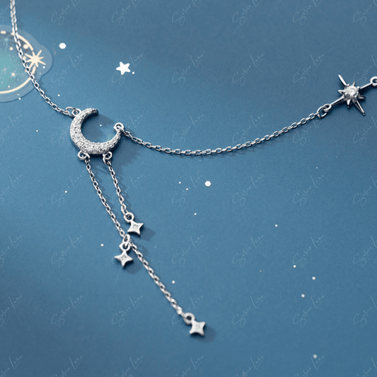 Moon and star sterling silver choker necklace