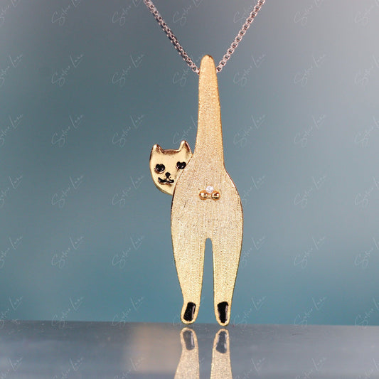 Funny cat necklace and earrings set in sterling silver
