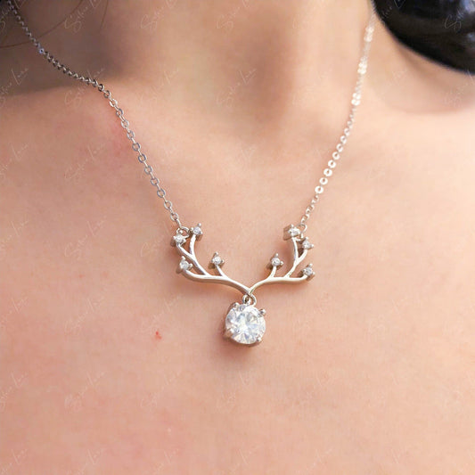 1CT Moissanite el antler pendant necklace
