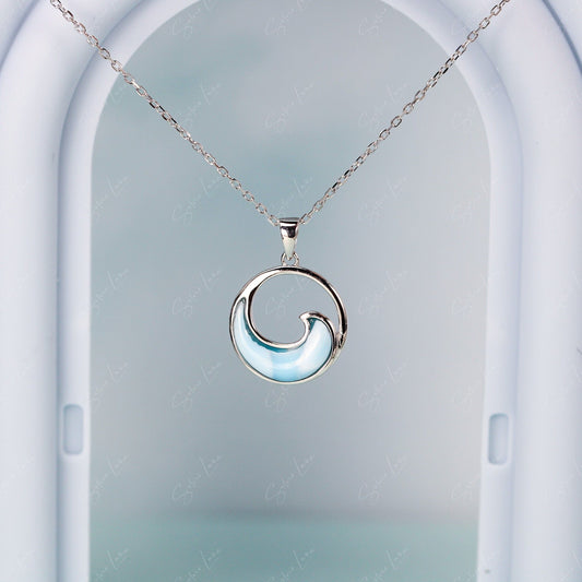 Blue wave Larimar pendant necklace in sterling silver