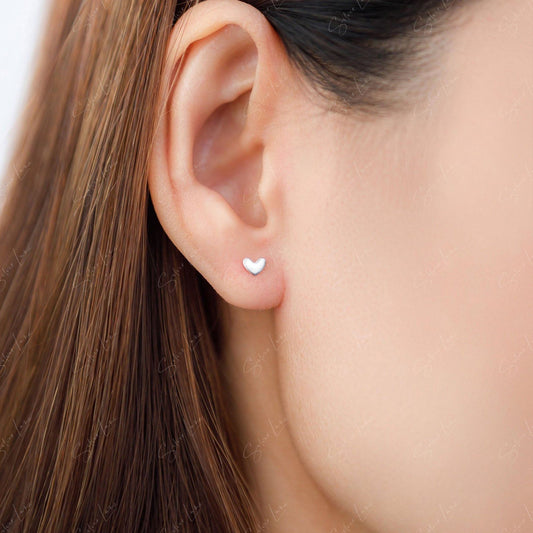 Tiny minimalist heart sterling silver stud earrings