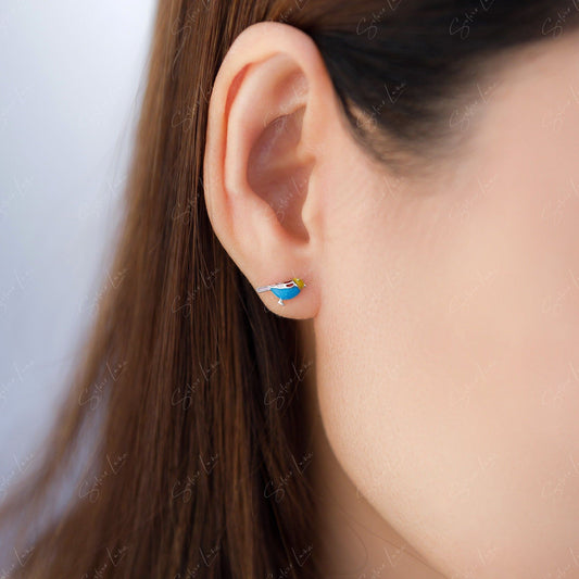 Enamel bird sterling silver stud earrings