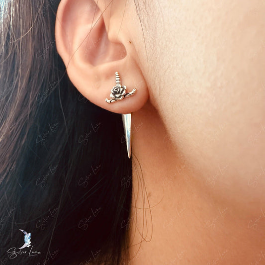 Silver rose sword dagger sterling silver earrings