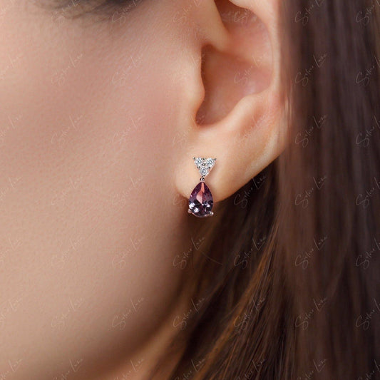 Teardrop Alexandrite sterling silver stud earrings