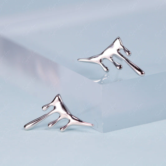 Abstract dripping sterling silver stud earrings