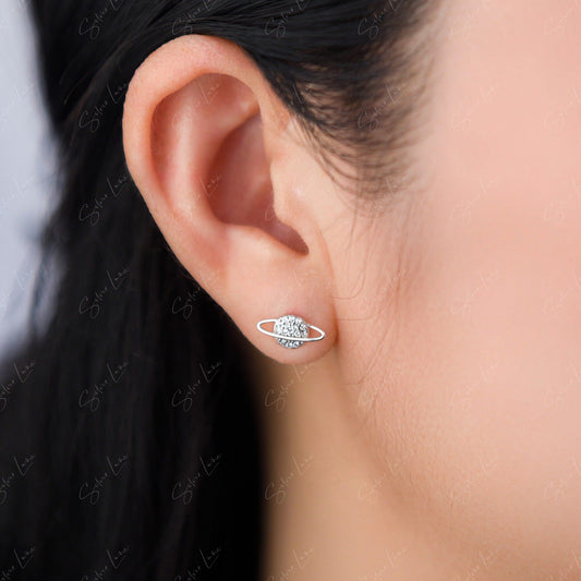 Planet moon star sterling silver stud earrings