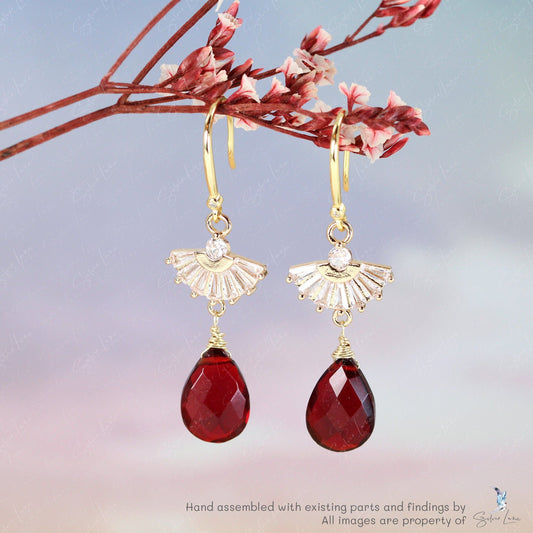 Red Garnet beads teardrop Y Lariat pendant necklace