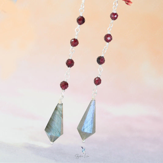 Marquise Labradorite Kyanite Hematite Red Garnet earrings