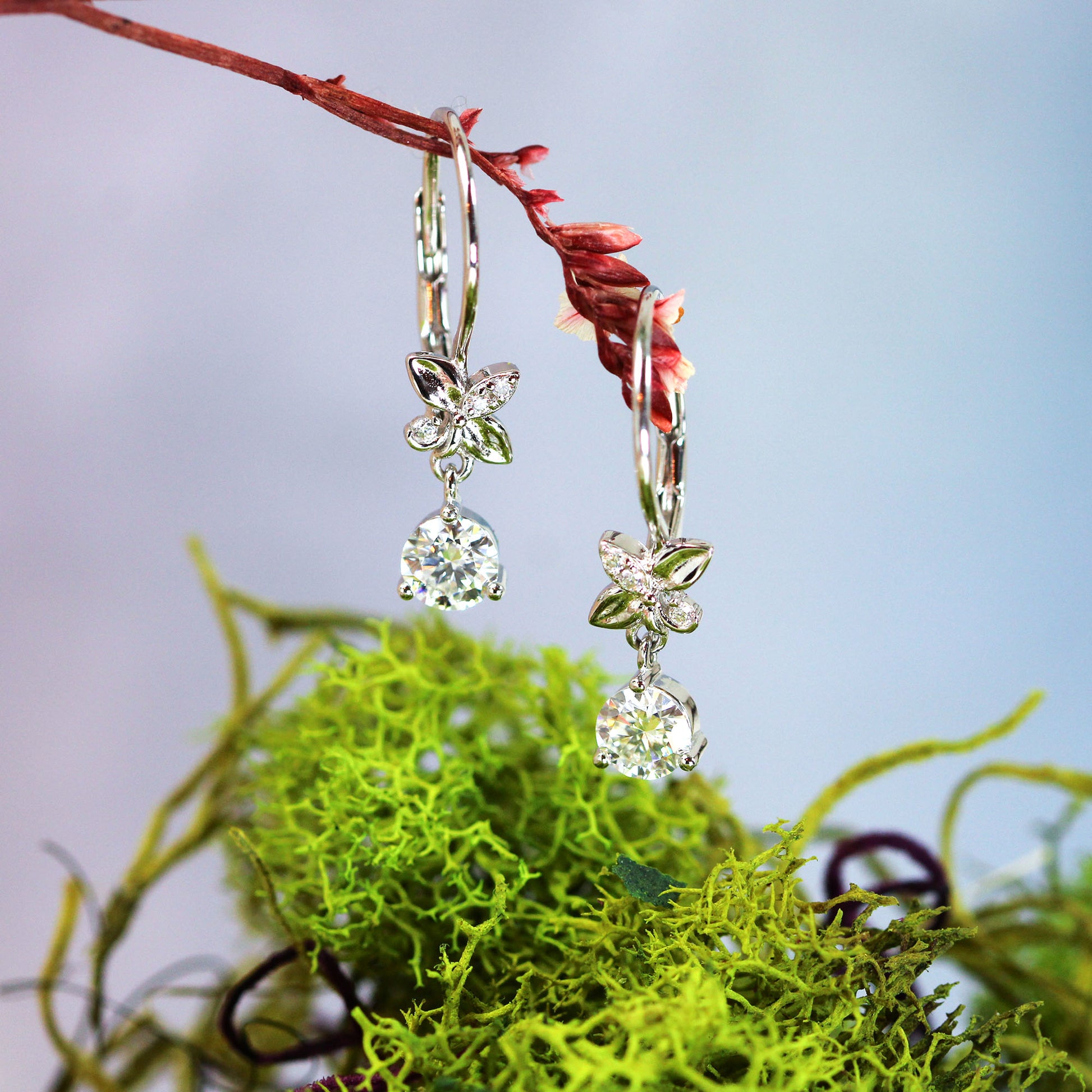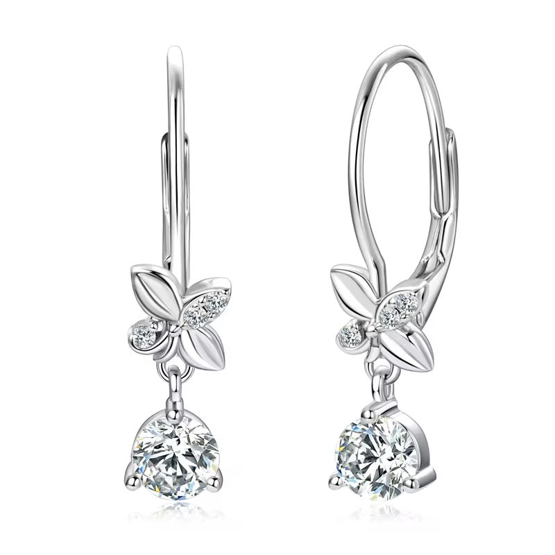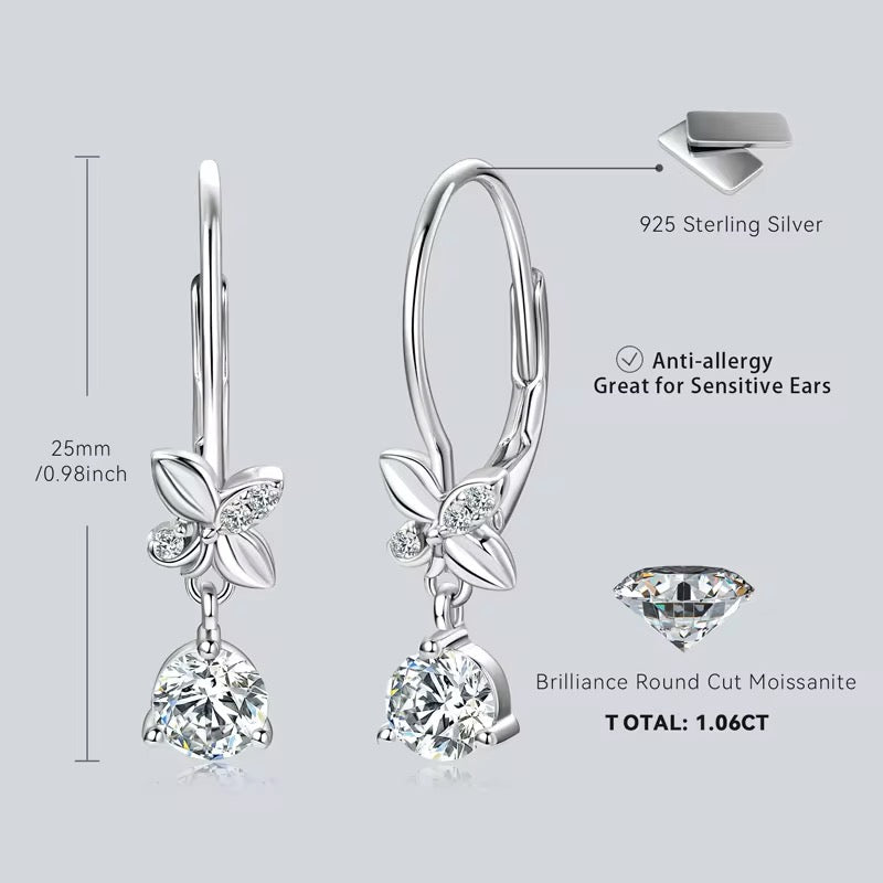1.06 CT Moissanite butterfly dangle drop earrings